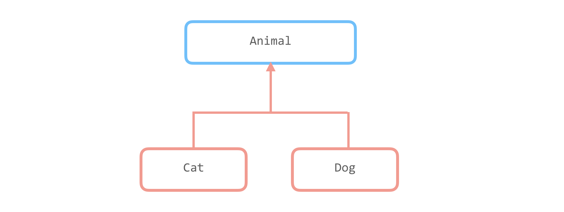Animal, Cat, Dog 클래스는 다음과 같은 관계를 가졌다.